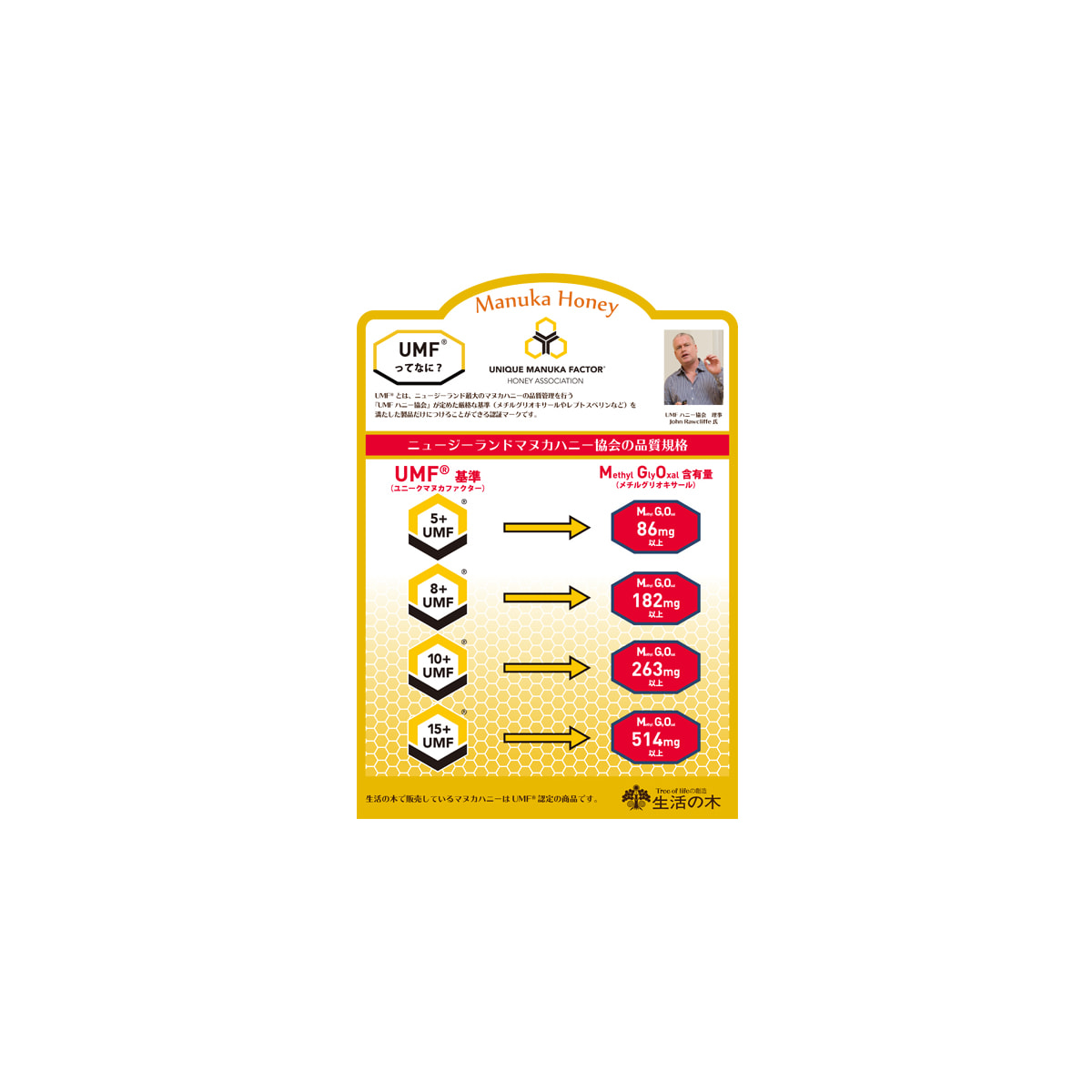 ニュージーランドの独立審査機関『UMFハニー協会』にライセンスを授与された商品にだけUMFの指標がつきます。