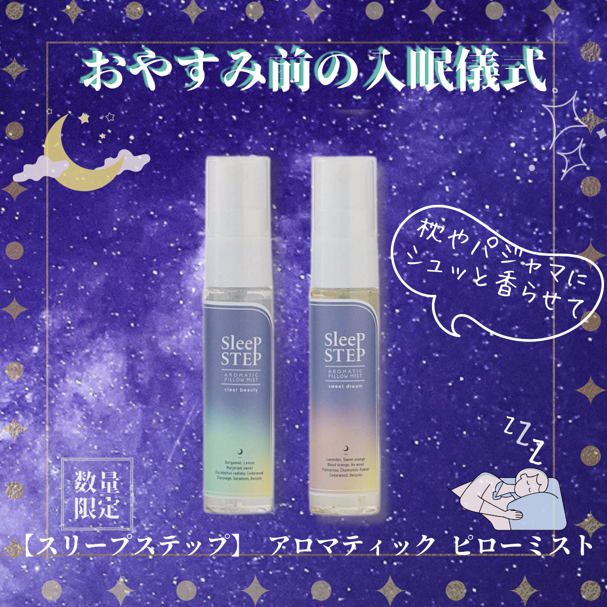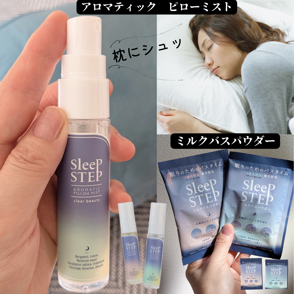 『がんばっているあなたへ ここちよい眠りを』 をコンセプトにフレーバーライフ社と「眠りとお風呂の専門家」小林麻利子さんがタッグを組んで生まれた〜「SLEEP STEP(スリープステップ)」 アロマシリーズより〜