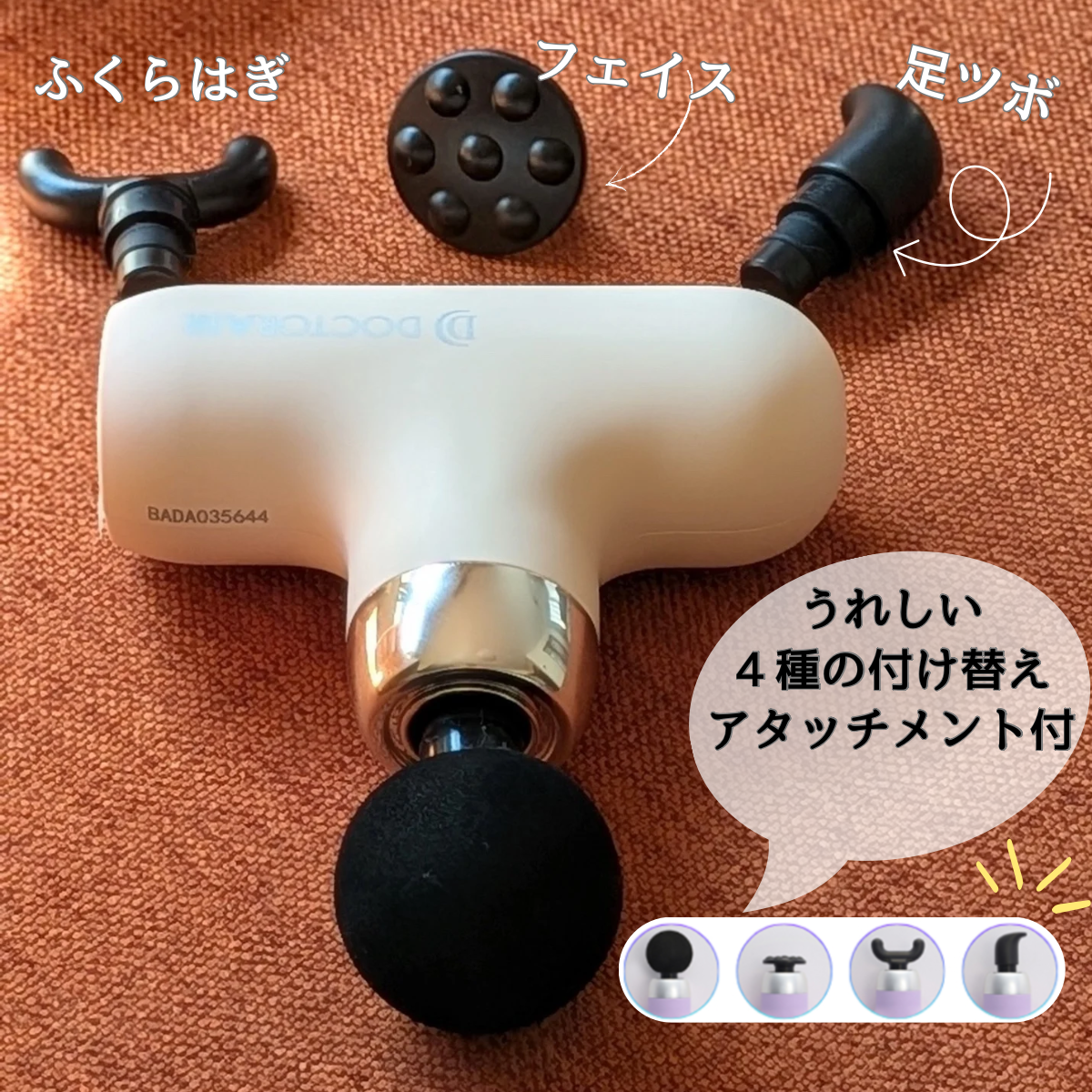より気になる部位をしっかりほぐしたい時は、本体に付属品の「4種のアタッチメント」を付け替えるだけで、部位ごとにケアが可能。ピンポイントに効きます。