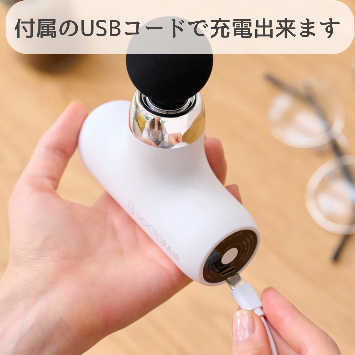 カンタンに充電できるUSBコード付きなので、出先でも安心ですね。