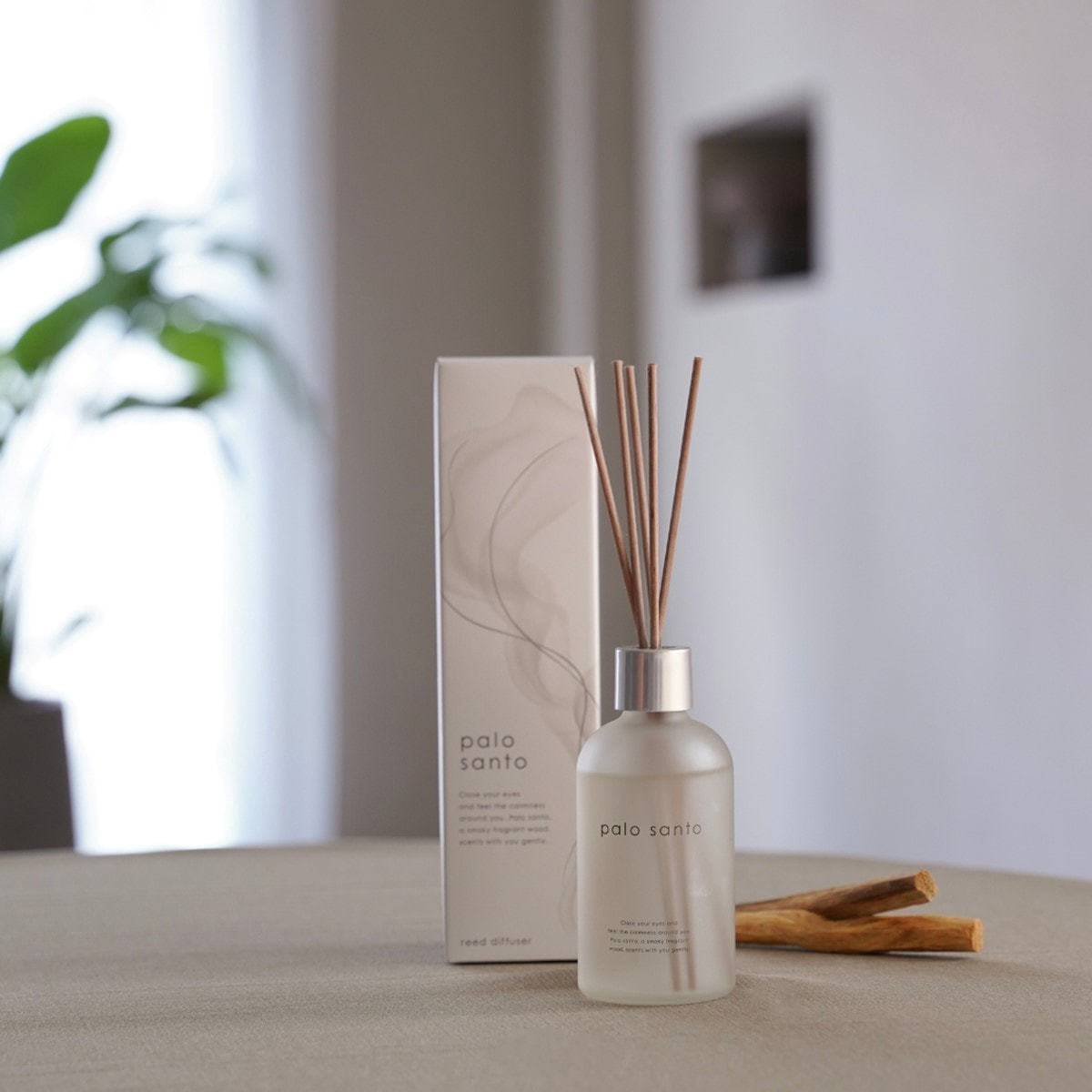 火を使わず、付属のスティックを挿すだけで、パロサントの香りを手軽に楽しめるリードディフューザー。