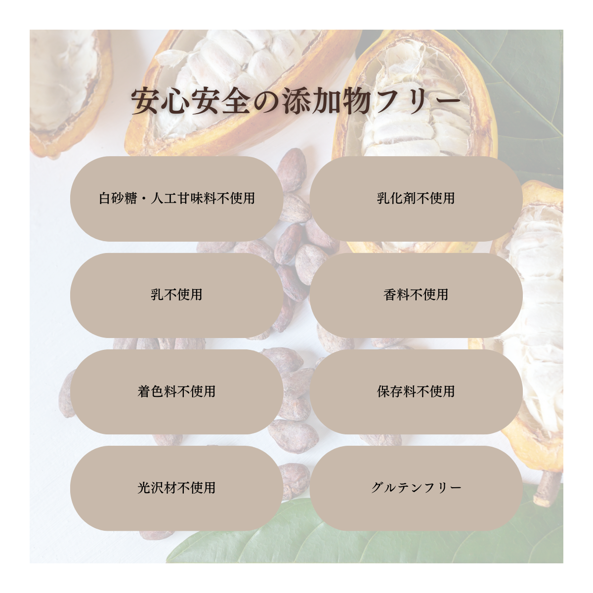 白砂糖・人工甘味料不使用 着色料不使用 グルテンフリー カゼインフリー 乳化剤不使用