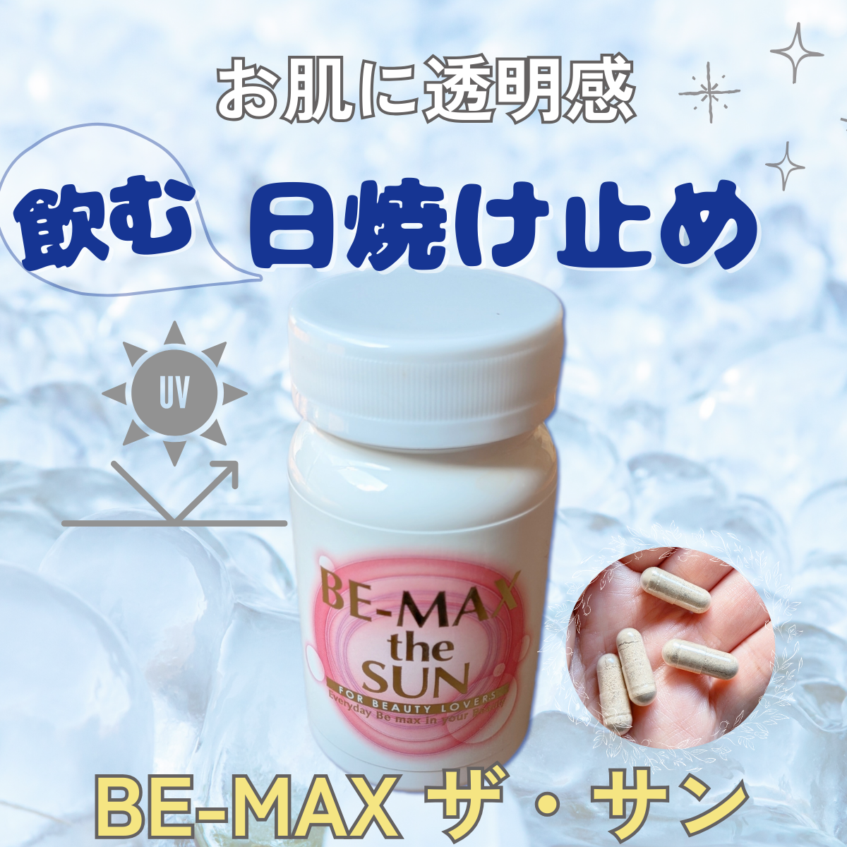 まだまだ暑い夏、、これ以上焼けたくない! 日差しや紫外線が気になる方におすすめの 身体の中からインナーケアする飲むタイプの日焼け止め 「BE-MAX(ビーマックス)」の 「 the SUN(ザ・サン)30カプセル」をご紹介します♪ 塗るタイプの日焼け止めは汗で落ちてしまったりして、 時間が経つと何度も塗りなおす必要がありますが こちらの商品は1日1~2カプセル飲むだけ! 紫外線ダメージを受けやすいお肌をからだの中から守り、 お手軽に紫外線対策をすることができます◎